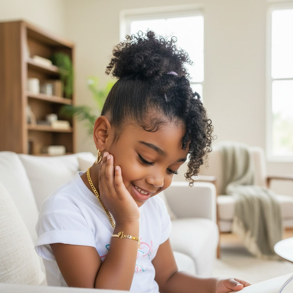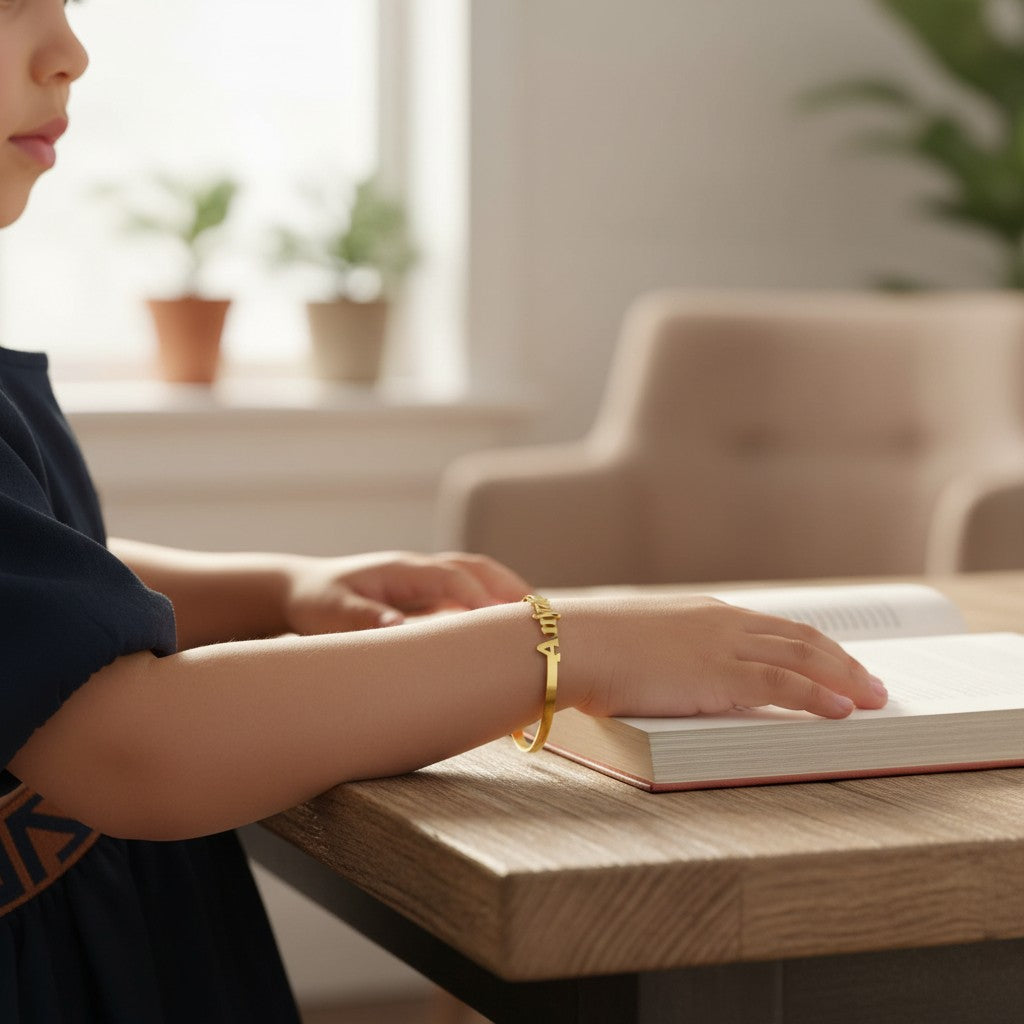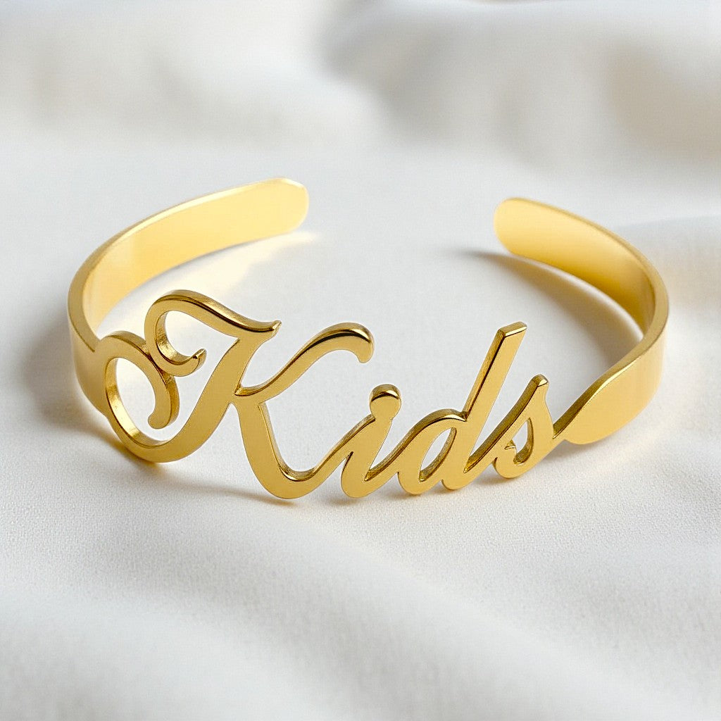 This Forever Cuff is the perfect blend of charm and sentiment. Designed with high-quality, skin-safe materials, it features your child’s name in elegant, gold-tone lettering on an adjustable baby-safe bangle. Whether for a birthday, baby shower, christening, or just because — this bracelet makes a meaningful keepsake they'll cherish for years.