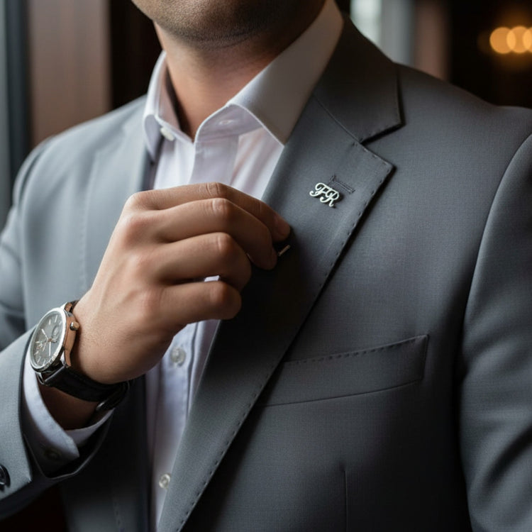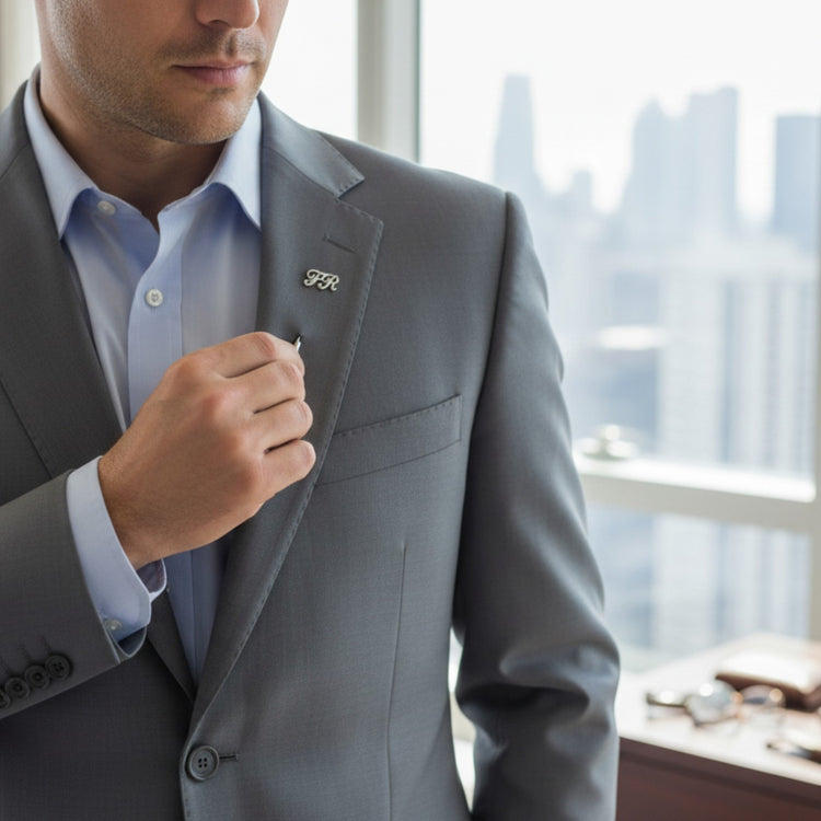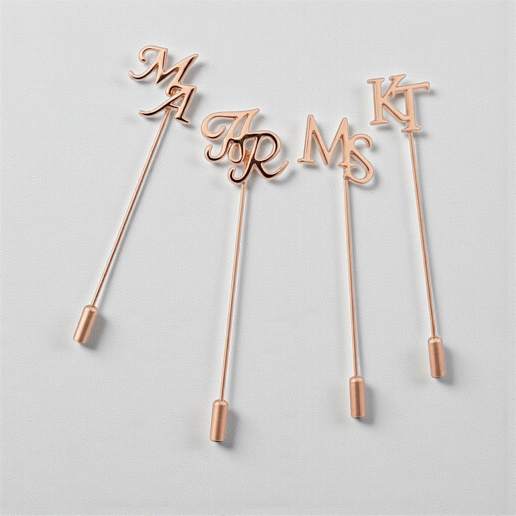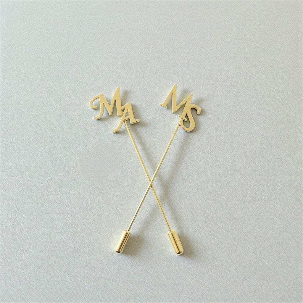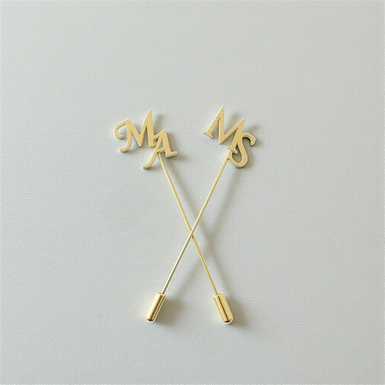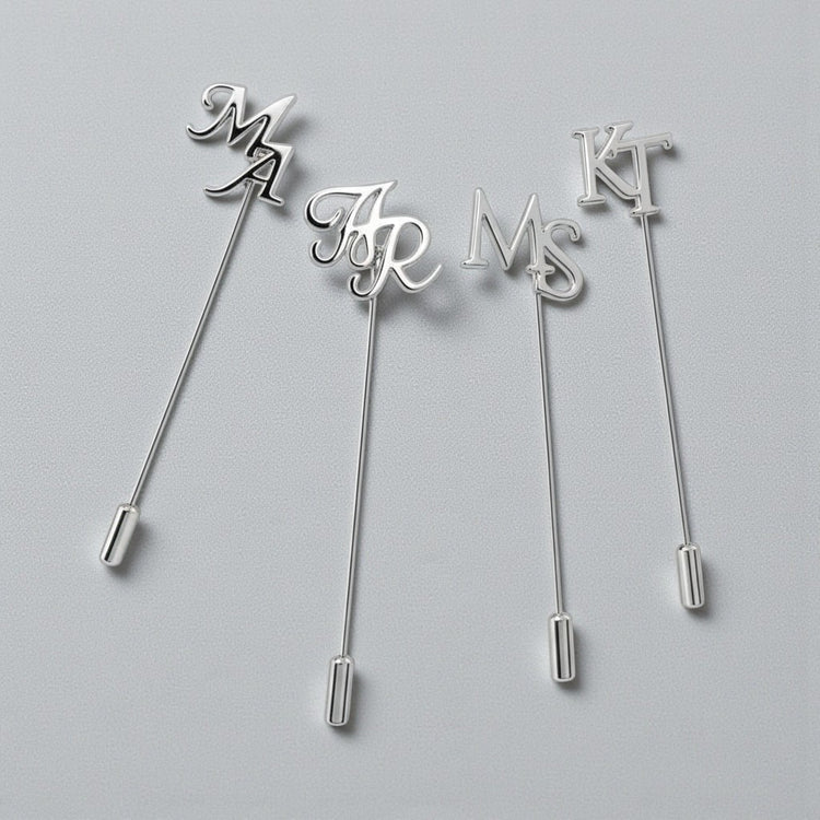 Elevate your signature style with The Royal Initial Pin, a refined personal emblem crafted for those who appreciate discreet luxury and expressive detail. Designed in an extended gentleman’s brooch silhouette, each pin features your chosen initials in an elegant monogram—perfect for suit lapels, coats, hats, scarves, ties, and formal attire.